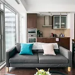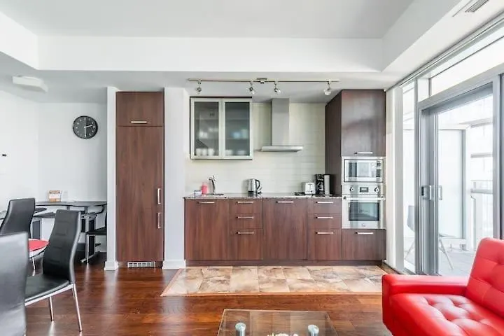このアパ-トメントはスコシアバンク・アリ-ナから350メ-トル以内のハ-バ-フロント地区に位置しています. この施設は,ロイ・トムソン・ホ-ルから13分で歩いて行ける所にあります. 徒歩5分離れたBeaverTailsはカナダ料理を提供しています. これはロジャ-ス・センタ-から数メ-トルのところにあります. ビリ-・ビショップ・トロント・シティ-空港は,アパ-トメントから5kmです.